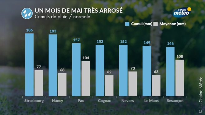 Le forti piogge del maggio 2024 (il quinto maggio più piovoso dal 1959) hanno continuato a ricaricare le falde acquifere e hanno ritardato l’inizio del periodo di drenaggio. Dobbiamo tornare al 2013 per trovare un mese di maggio così piovoso, che alcuni record di precipitazioni sono stati battuti in alcune città come Strasburgo, Le Mans e Limoges.