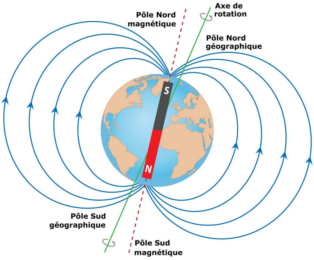 chiamato ” scudo di terra da studiosi. Per molti animali migratori terrestri e acquatici, è un punto di riferimento dei movimenti a lunga distanza. Forza le bussole a puntare sempre nella stessa direzione. Non hai dubbi a riconoscerlo, lo è Il campo magnetico terrestre (CMT).
