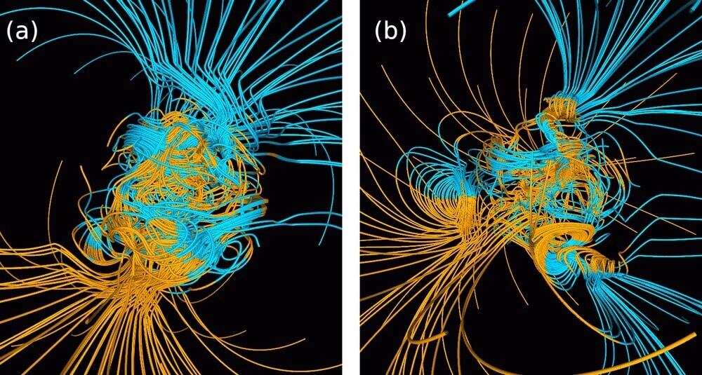 Quando i movimenti del carico sono sufficientemente forti, si innesca l’instabilità della dinamo (l’“aumento” automatico del campo magnetico nel tempo) e produce un campo magnetico la cui geometria dipende naturalmente dai movimenti che lo provocano. il campo cresce Fino a quando le forze di Laplace (le forze di origine magnetica) competono con la forza di Coriolis.